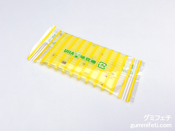 今回の新フレーバーであるゴールドキウイフルーツのすごいところはキウイの黒い種を再現してるところです。シートに見える黒いのがそれです。この部分、ちゃんとキウイ食べた時みたいにプチプチ言うの!僕みたいにグチグチ言うんじゃなくてプチプチなのでかわいいもんですよね!
